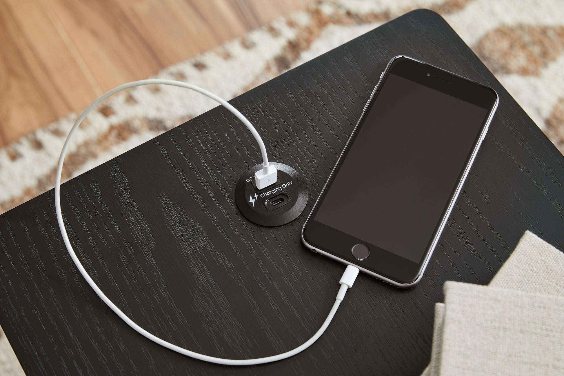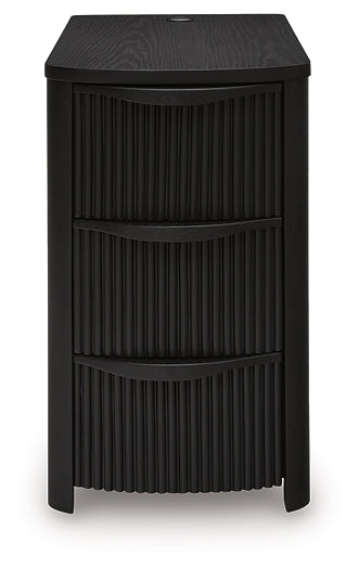 Details | Made with hardwood solids, veneers and engineered wood, Rich black wood grain finish, Integrated drawer handles, 3 curved-front drawers, USB-A and USB-C charging, Power cord included; UL Listed | |
