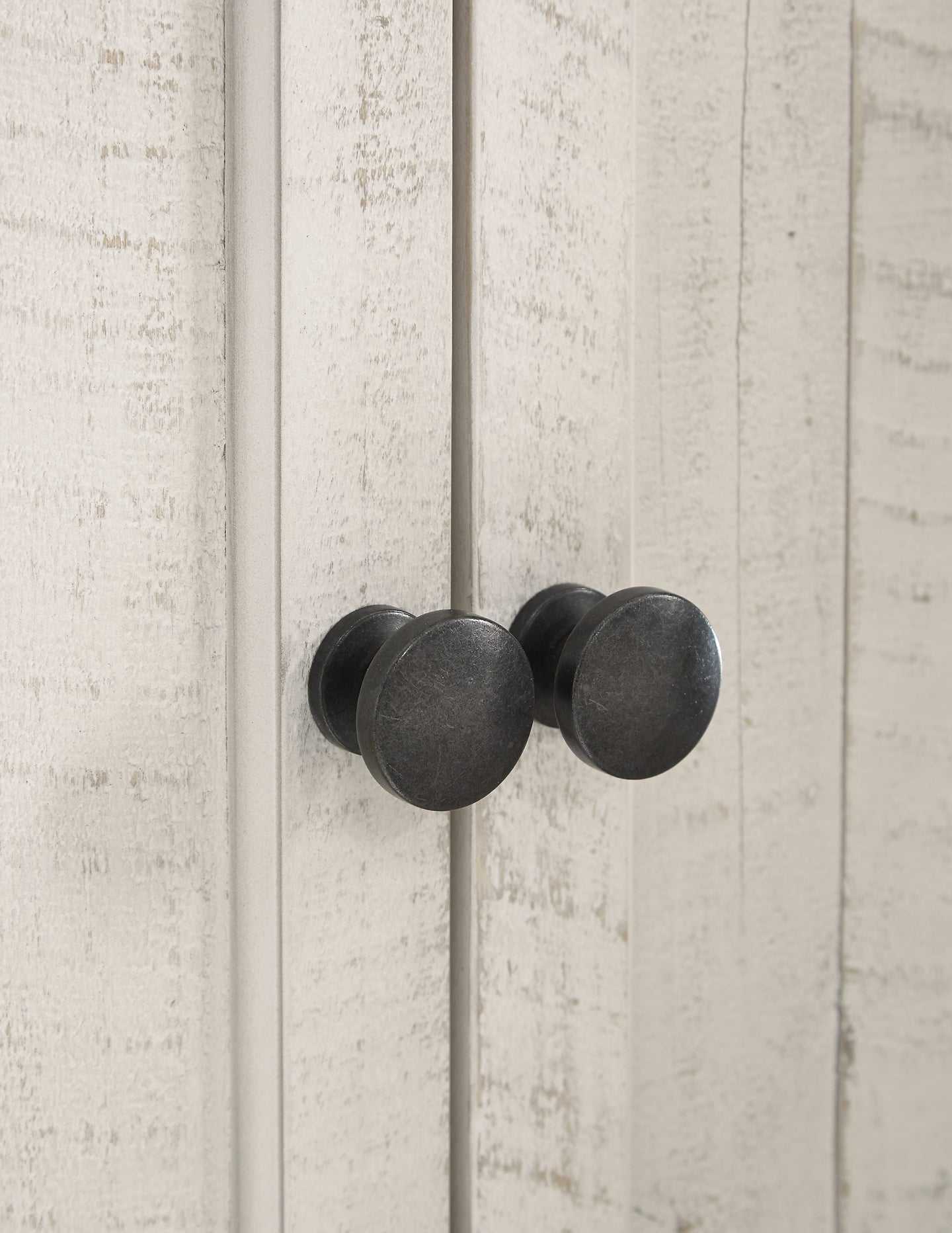 | Details | Includes TV stand, 2 pier cabinets and bridge, Made of pine wood, pine veneer and engineered wood , Two-tone distressed finish: weathered gray top; vintage white base, TV stand with 2-door cabinet with single-shelf storage and 2 open shelves, Each pier cabinet with 2 fixed shelves and cabinet with single-shelf storage, Aged iron-color hardware, Cutouts for wire management, Assembly required | |