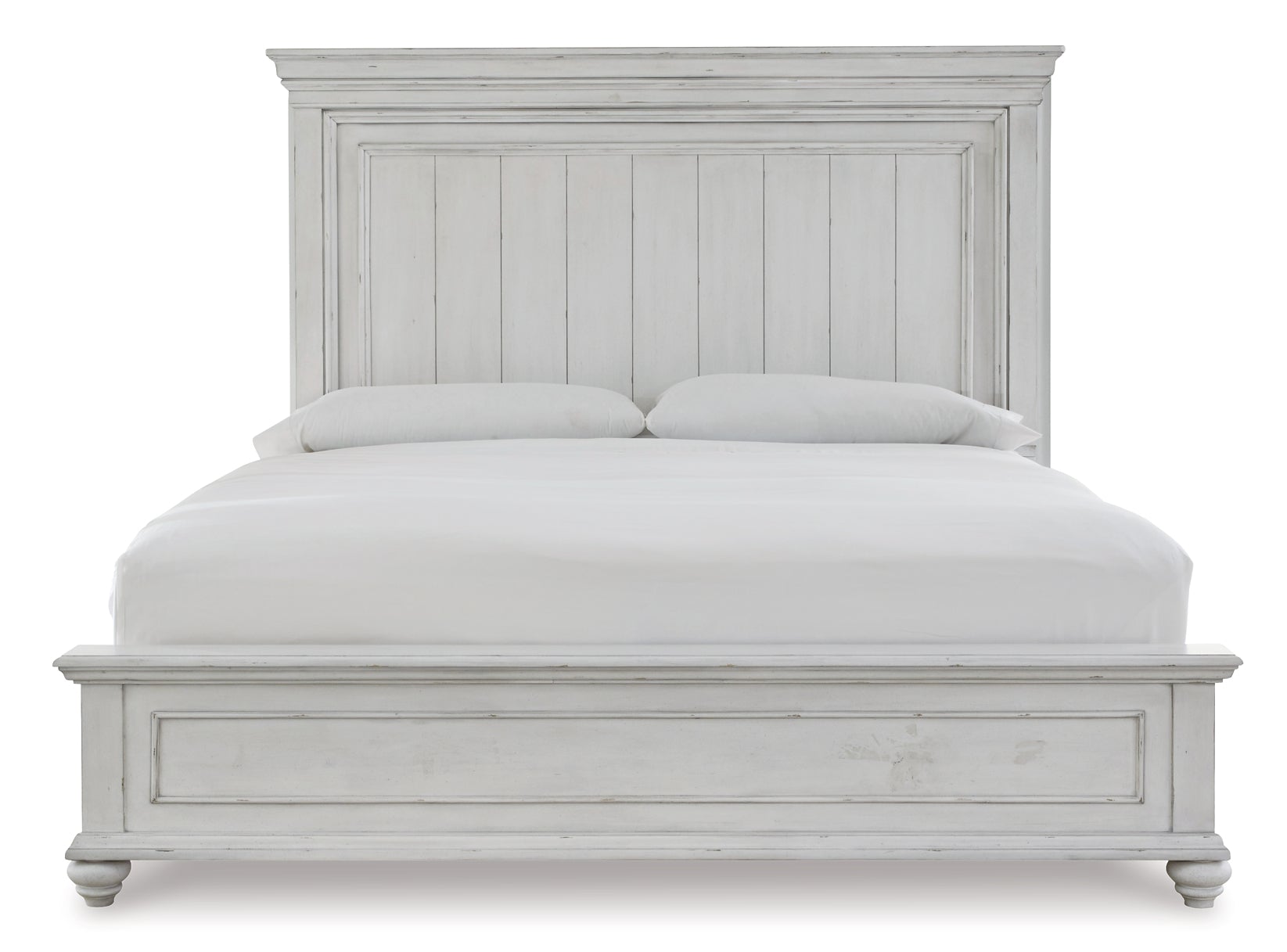 Includes queen panel headboard, footboard and rails, Made with solid wood, veneers and engineered wood, Distressed whitewash finish, Foundation/box spring required, sold separately, Mattress available, sold separately, Assembly required