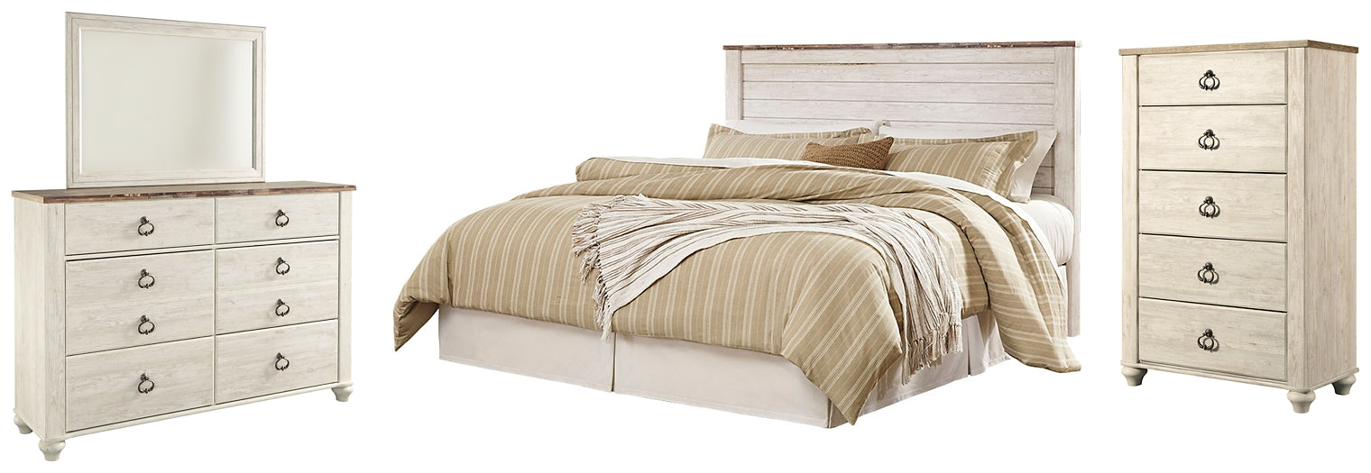 Willowton / Panel Headboard With Mirrored Dresser And Chest